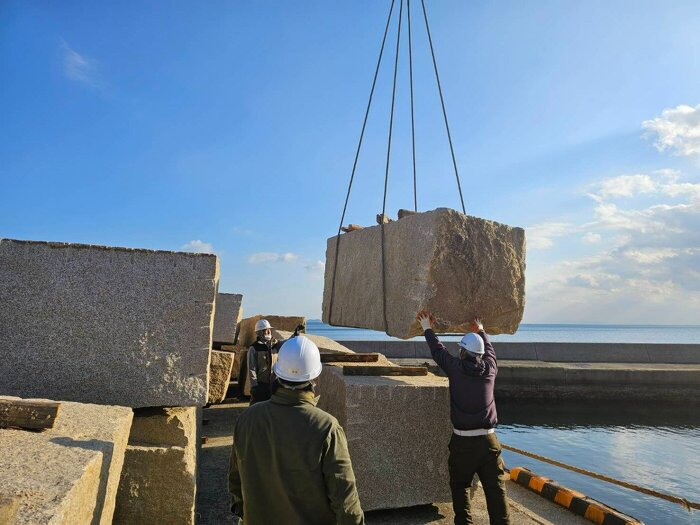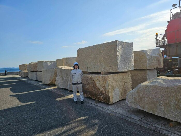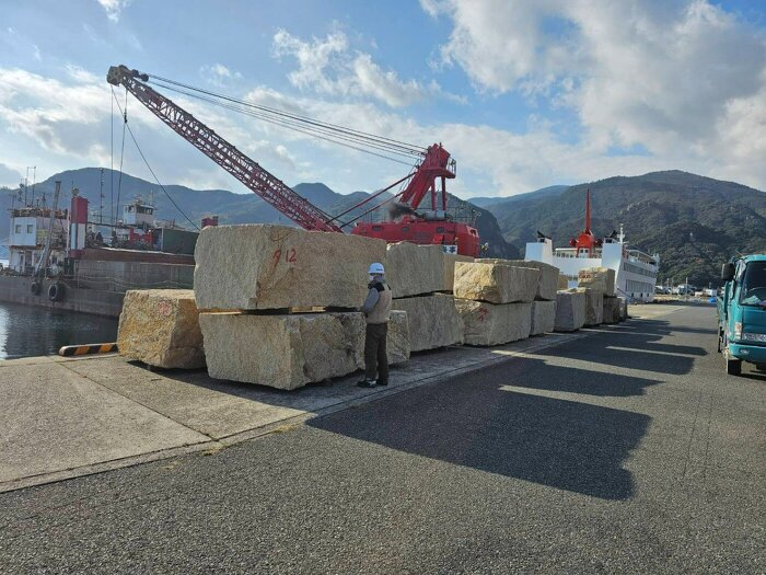 国産花崗岩、犬島石が弊社本社のある小豆島へ入荷いたしました。